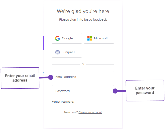 - Alternatively, use single sign-on (through your Juniper Education account, Google account or Microsoft sign in).