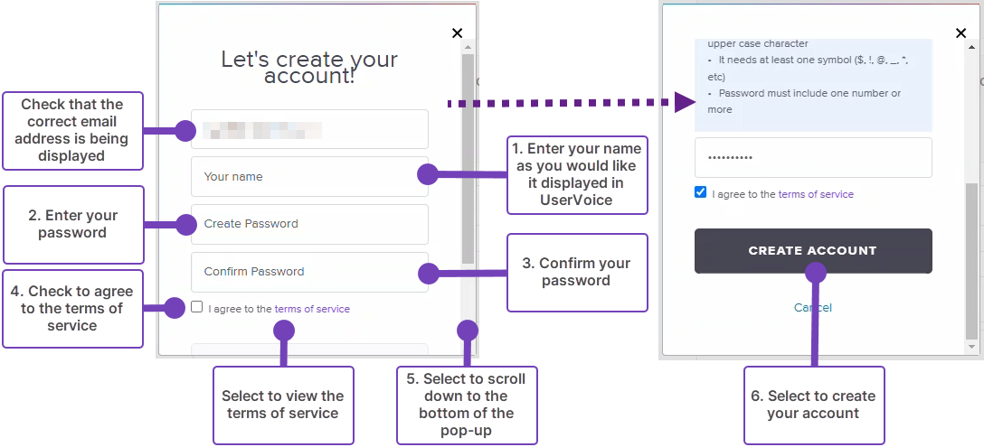 Creating a UserVoice account using your school email address and a password is simple: