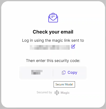 Make a note of your Security Code, or copy it to your clipboard.